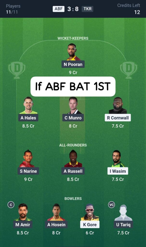 ABF vs TKR DREAM11 TEAM