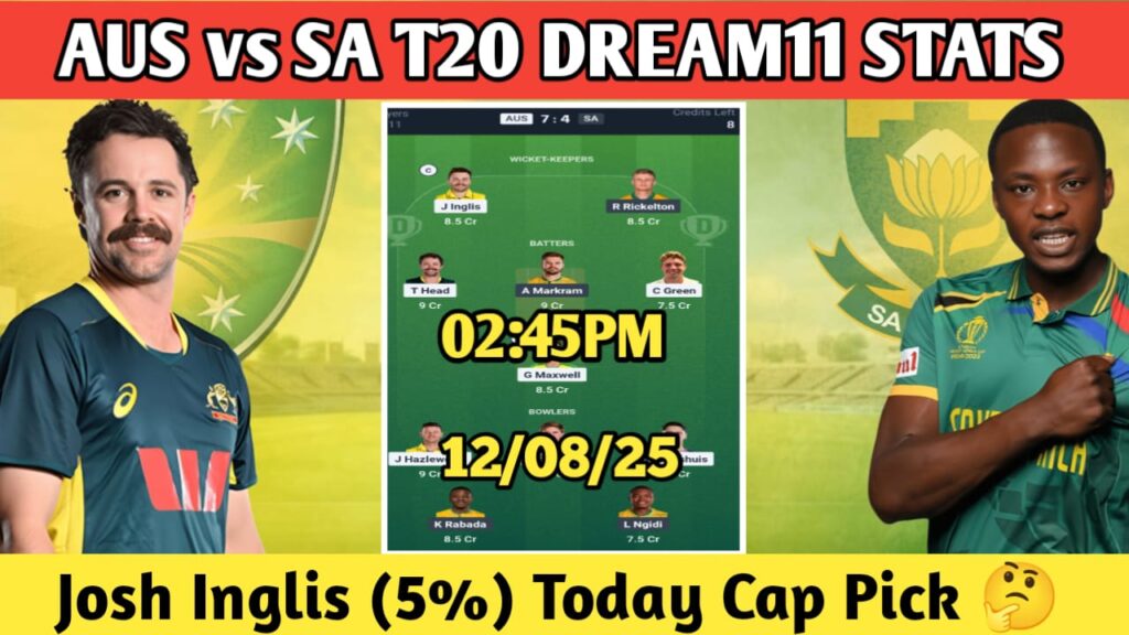 AUS vs SA T20 Today Dream11 Prediction | Fantasy Cricket Tips, Playing 11, Live Score and Pitch Report for Australia vs SouthAfrica T20i 2025 , Match 1 , Dream11 AUS vs SA T20 Today Dream11 Prediction | Fantasy Cricket Tips, Playing 11, Live Score and Pitch Report for Australia vs SouthAfrica T20i 2025 , Match 1 , Dream11 Read More » August 10, 2025