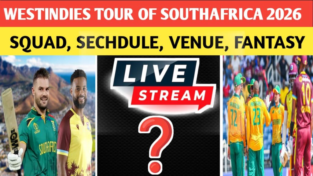 Westindies Tour of SouthAfrica 2026 – Squads ,Schedule Venue & Time | Live Streaming & Full Details | Westindies Tour of SouthAfrica 2026 – Squads ,Schedule Venue & Time | Live Streaming & Full Details | Read More » January 27, 2026
