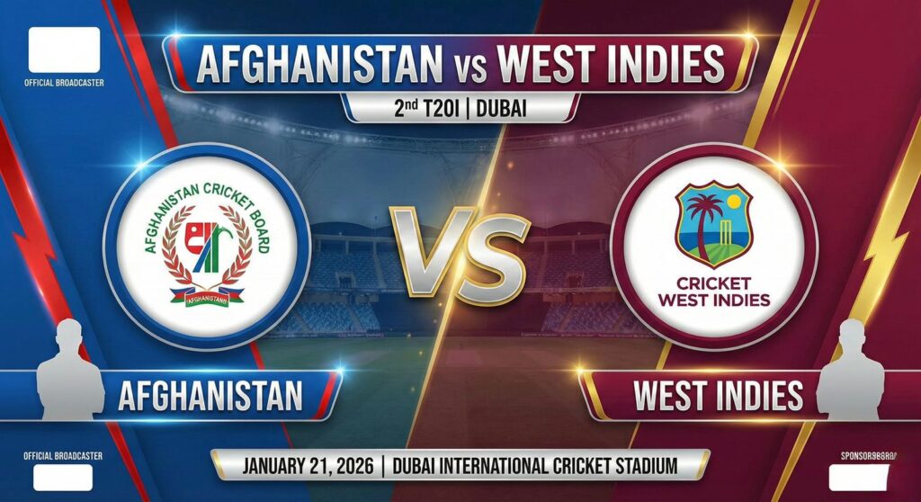 Afghanistan vs West Indies, 2nd T20I at Dubai, AFG vs WI, Jan21 2026 – Cricket Score Afghanistan vs West Indies, 2nd T20I at Dubai, AFG vs WI, Jan21 2026 – Cricket Score Read More » January 22, 2026