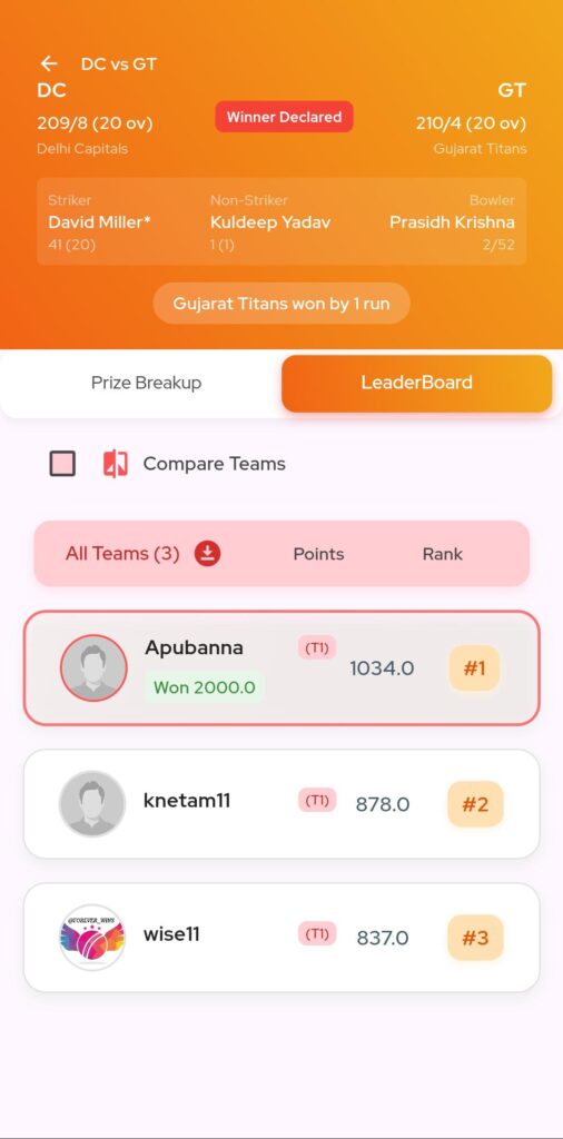- User Interface: The user interface of the ChampionsAdda new fantasy app is user-friendly and easy to navigate, allowing anyone to join contests without any difficulty.