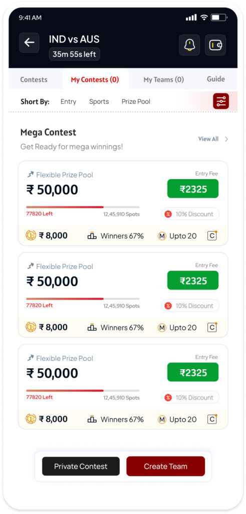 • User Interface: The user interface of the FX11 new fantasy  app is user-friendly and easy to navigate, allowing anyone to join contests without any difficulty.