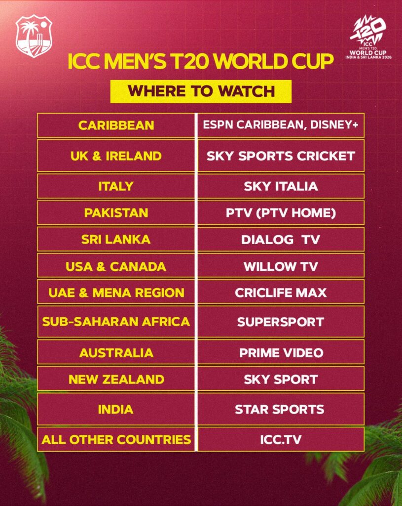 | 🌴 West Indies | 🇵🇰 Pakistan |