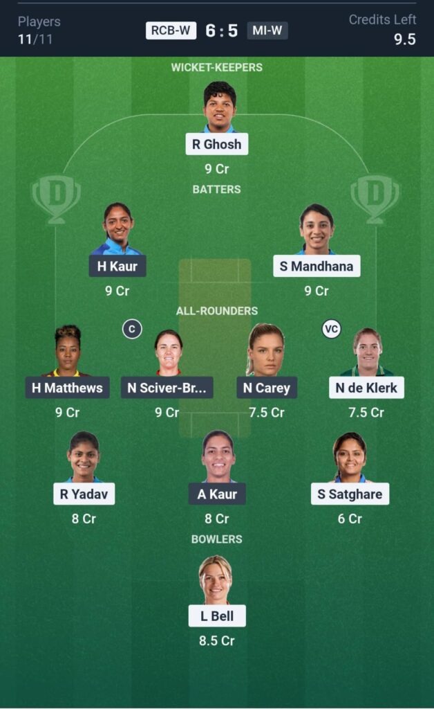 RCB-W vs MI-W DREAM11 TEAM
