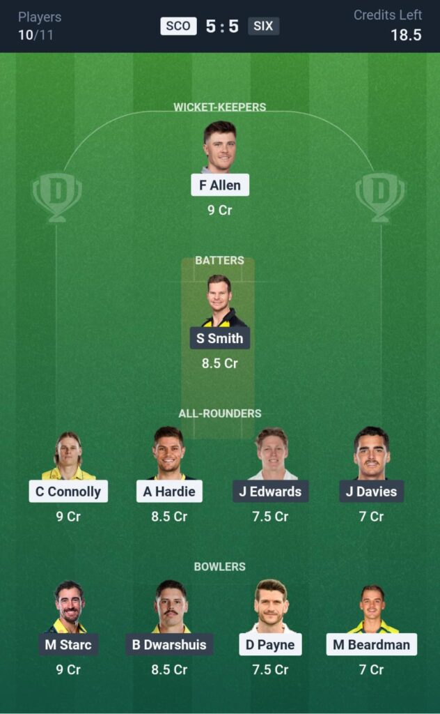 SCO vs SIX DREAM11 TEAM