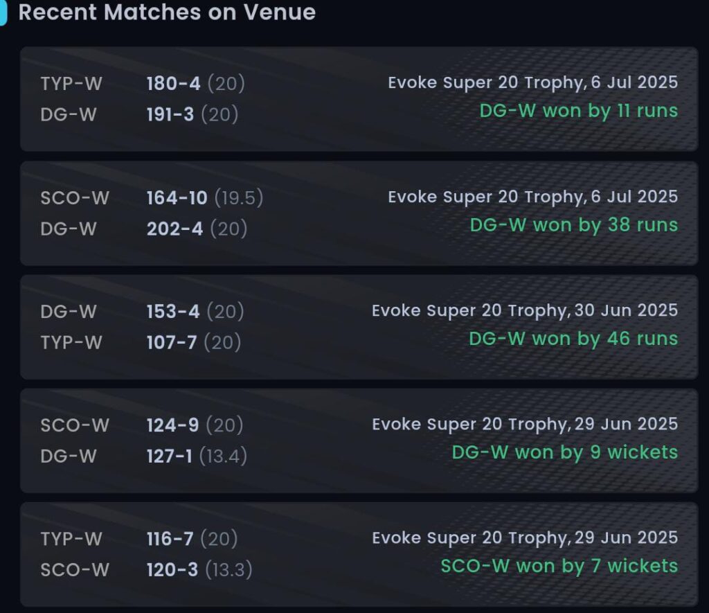 12(12) | DNB | T20 | 30-Jun-2025 |